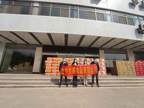 濰坊大順食品有限公司捐贈防疫物資,疫情防控人員夜以繼日保障廣大人民群眾的健康,我司為防控人員提供幫助,送去溫暖,為疫情抗擊工作做出微弱貢獻,守護我們共同的家園。濰坊大順食品有限公司是一家專業生產低溫油炸果蔬脆片的工廠,我們有60多種產品,有12年的生產經驗。產品出口日韓、歐美多個國家。
